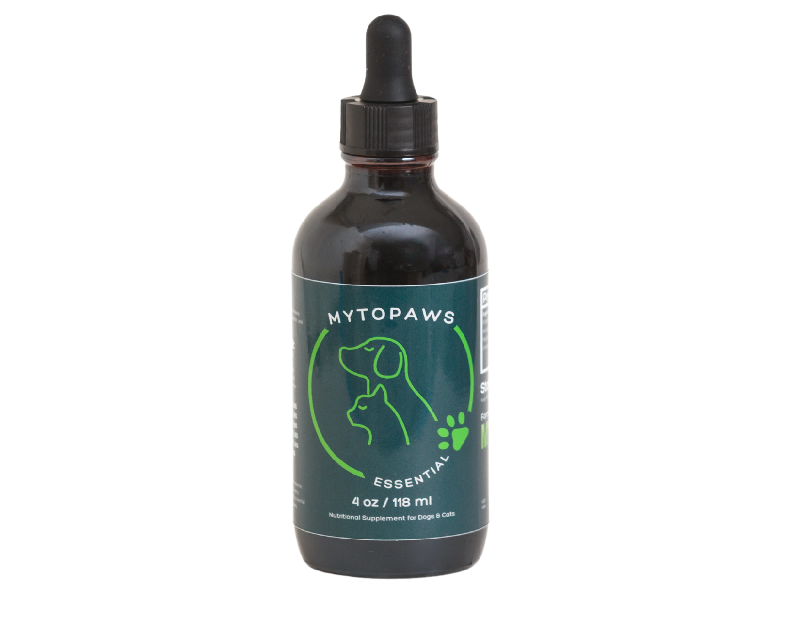 Mytopaws Essential is a nutritional supplement for use in dogs and cats. Recommended to support immune health, boost energy, promote mitochondrial regeneration, and enhance longevity.